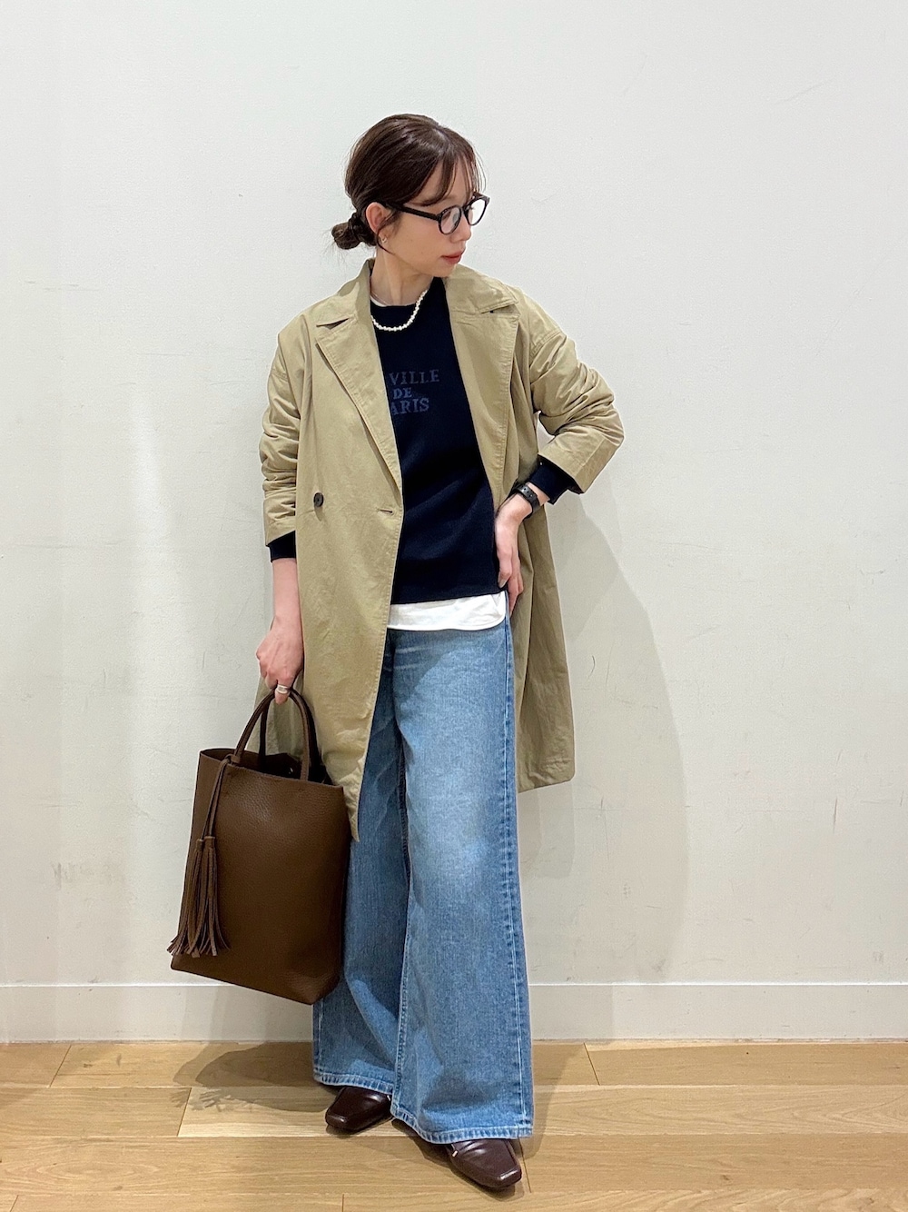💙+🩵+🤍のクリーンな組み合わせで、 カジュアルでもラフになりすぎないバランスに。 シンプルだけど、配色とシルエットで魅せる大人カジュアル。 👖…やや大きめなサイズ感、Sサイズが丈もぴったり 👕…Sの着丈でも◎ニットはこれからの季節一枚でも着られるオススメsale品