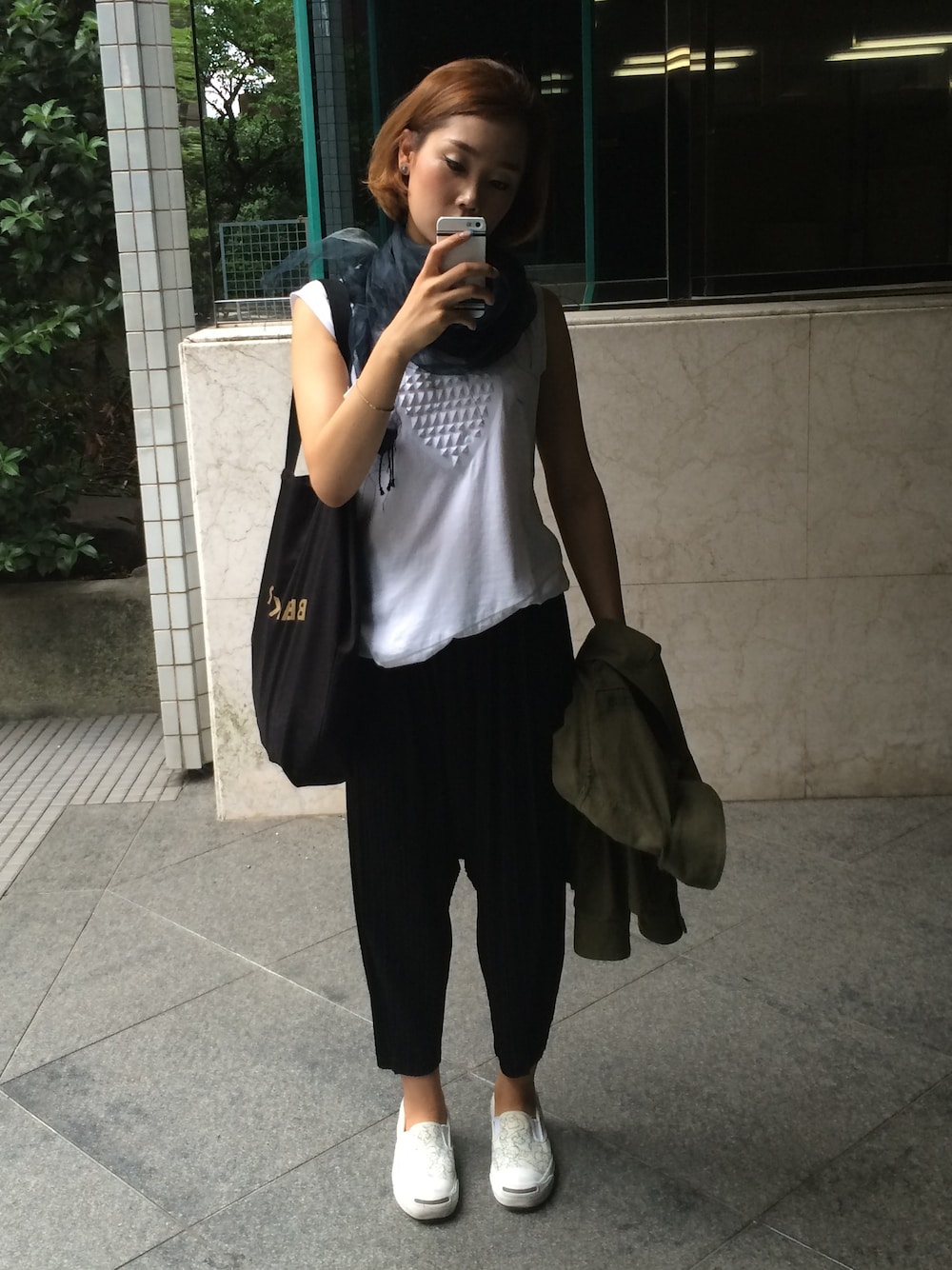 일년만에 shinjuku! 오랜만에 땀띠도나고.... 머플러이모티콘이 없어서당황 👚 : kuho+ 🎀 : kuho 👖 : pleatsplease 👟 : jackpercell