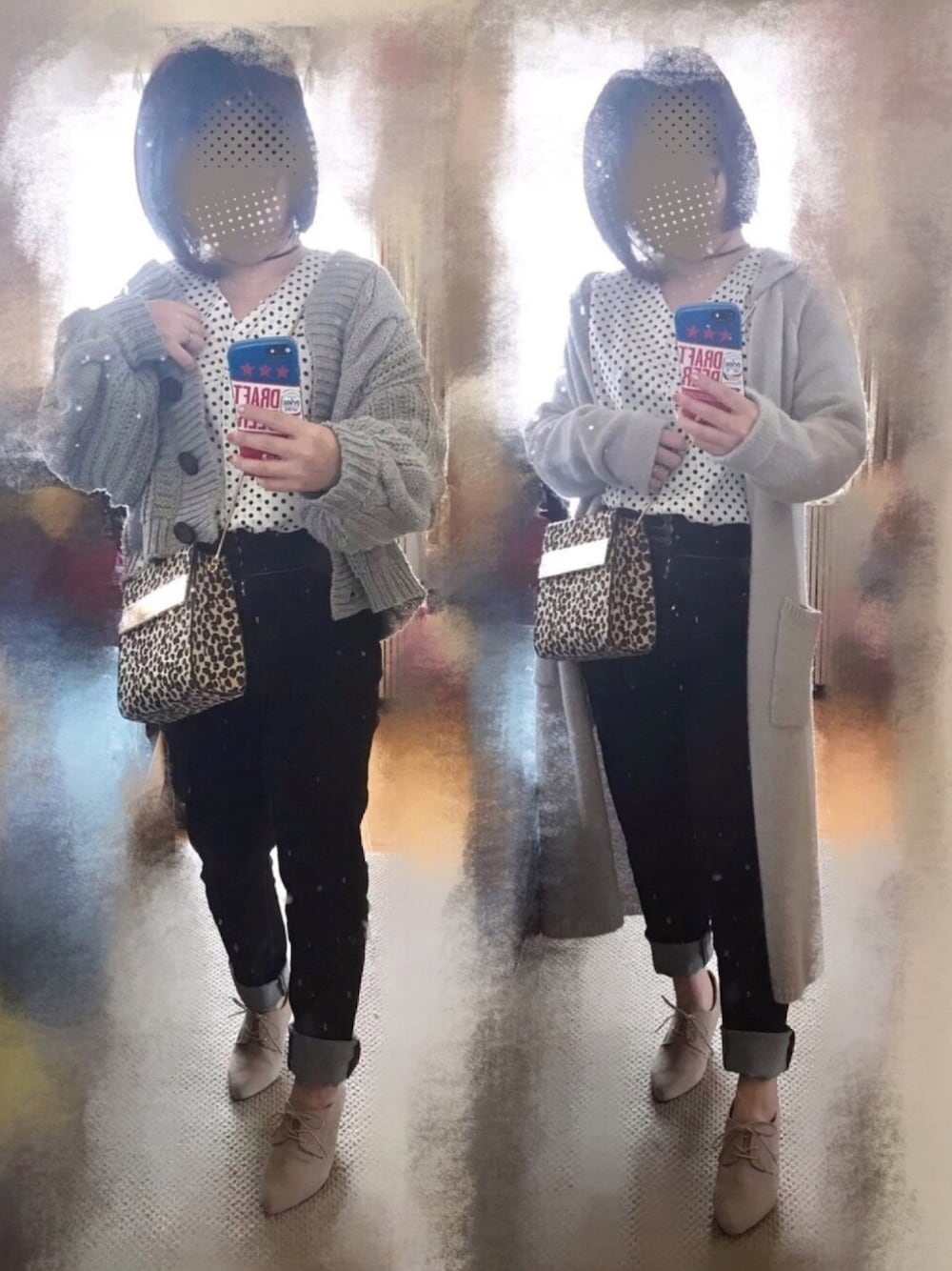 ロングカーデとボリュームショートカーデ。どっちも好き。