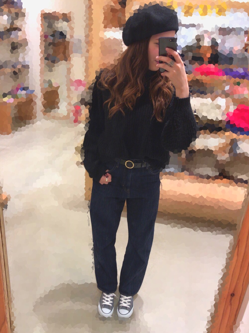 安定のベレーは14+¥3500 トップスはタートルニット。レトロガールです。前だけイン¥1500とかかな? パンツはいつもの¥5000円くらい。 靴もコンバースやすくなってて¥4500 指輪はアルマーニ数年前のです😭