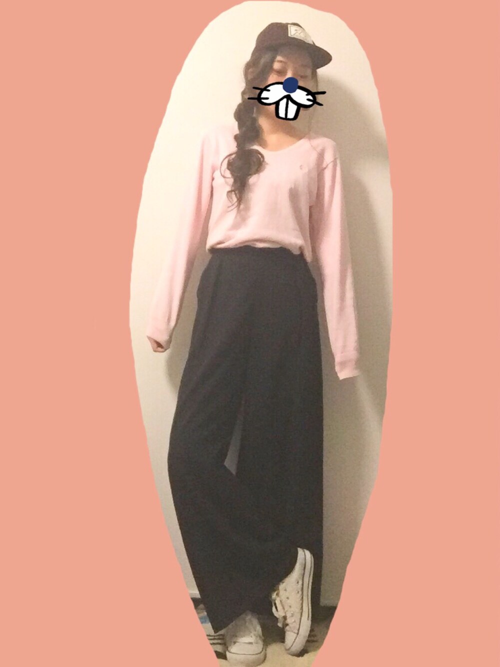 ベビーピンクのニットはFRED PERRYのメンズのXSです。 割と身長あるので、メンズの服よく着ます。