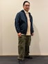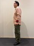 春物の新規アイテムでコーディネートを組んでみました。 無骨なミリタリー系のパンツとダック生地のパーカーに春を想起させるような生成り色に鮮やかな赤のボーダーのラガーシャツです。 パンツはゆったりとした履き心地で裾にドローコードがついていますのでシルエットの変化を楽しむことができ、なおかつジッパーで切り離してハーフパンツにすることもできる優れものです。 ダック生地のパーカーも身幅が広めの作りをしていて暖かくなってきてもリラックスした着心地を楽しめます。 今から使えてさらに春先まで使えるアイテムとなっています。 ぜひお試しください。 ※インナーのラガーシャツの表記がXLですが、実際はXXLです。