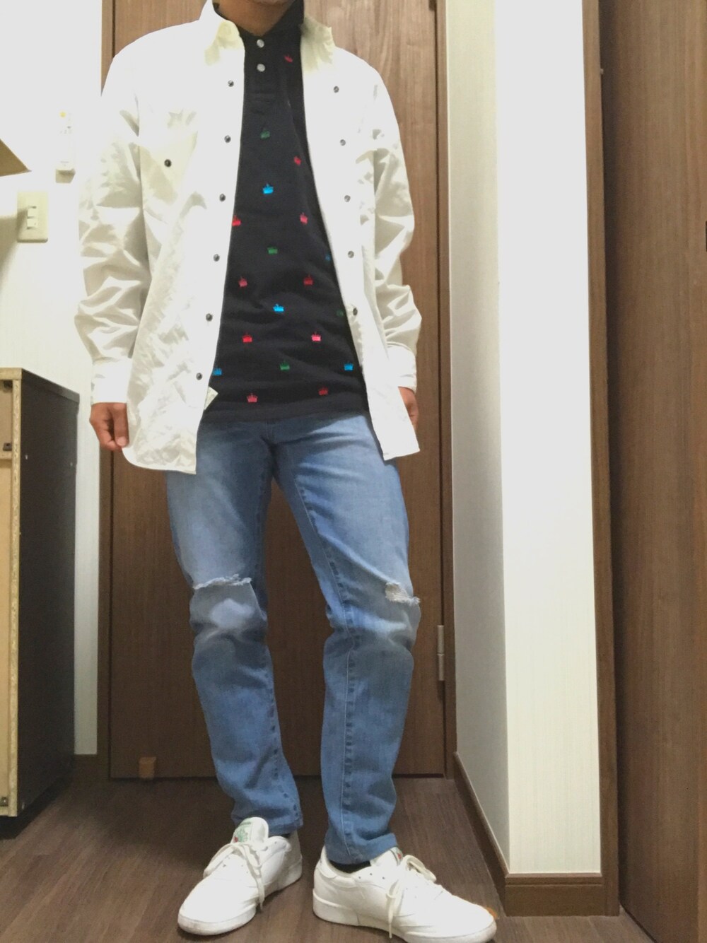 今日のこのコーデでお出かけは寒かった😅 TOMMYのこのシャツ可愛くて気に入っちゃいました😆😆 白シャツもシンプルで良き良き♪ 今度からは天気予報見てコーディネートしなきゃな…(笑) 家中で靴履いてるのはどうかご勘弁を┏●