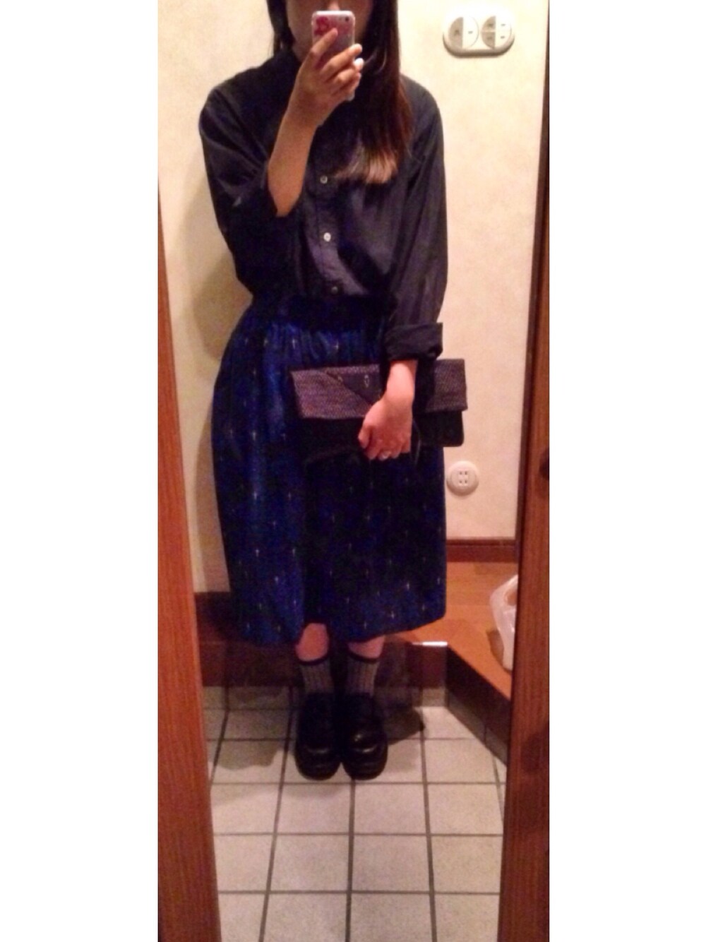 シャツ・靴 / used スカートとクラッチに使われている 久留米絣がとても好きです、