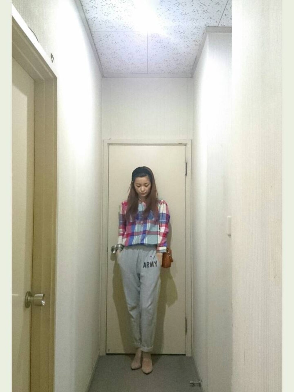 パジャマっぽくならないように足元はピンヒール×チェックシャツで☆ 現代のアメリカの学生はこんな感じかな?w bag→ロビタ チェックシャツ→フリークスストア ヒール→ダイアナ