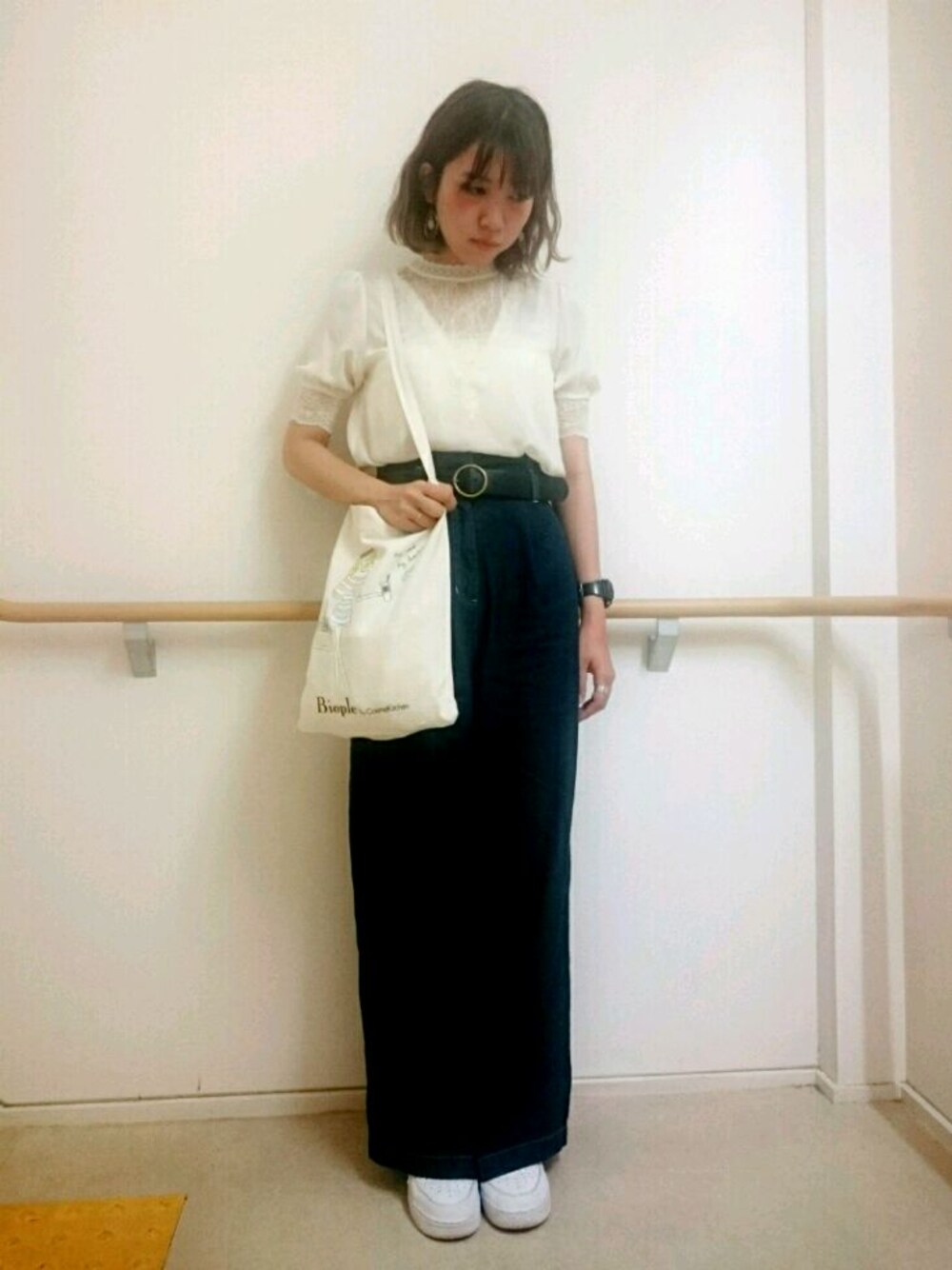 ♡モモセエリナ♡のパンツ「ベルト付きワイドデニムパンツ」を使ったコーディネート