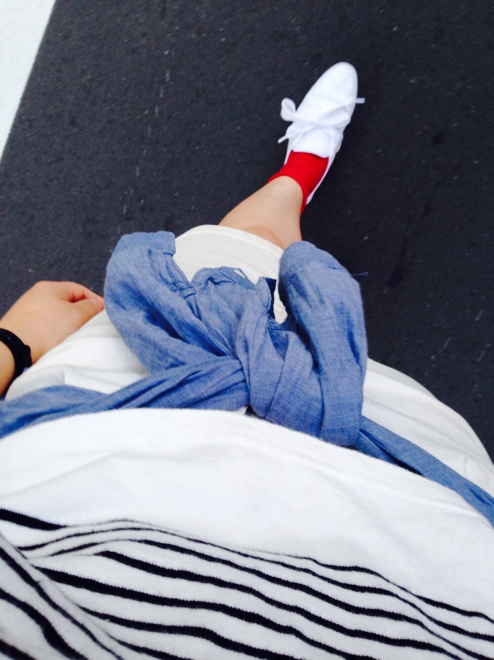 シャツ:H&M 靴下:靴下屋 バッグ:used adidasの白スニーカーかなりのお気に入りで 毎日のように履いています(๑*౪*๑)♫