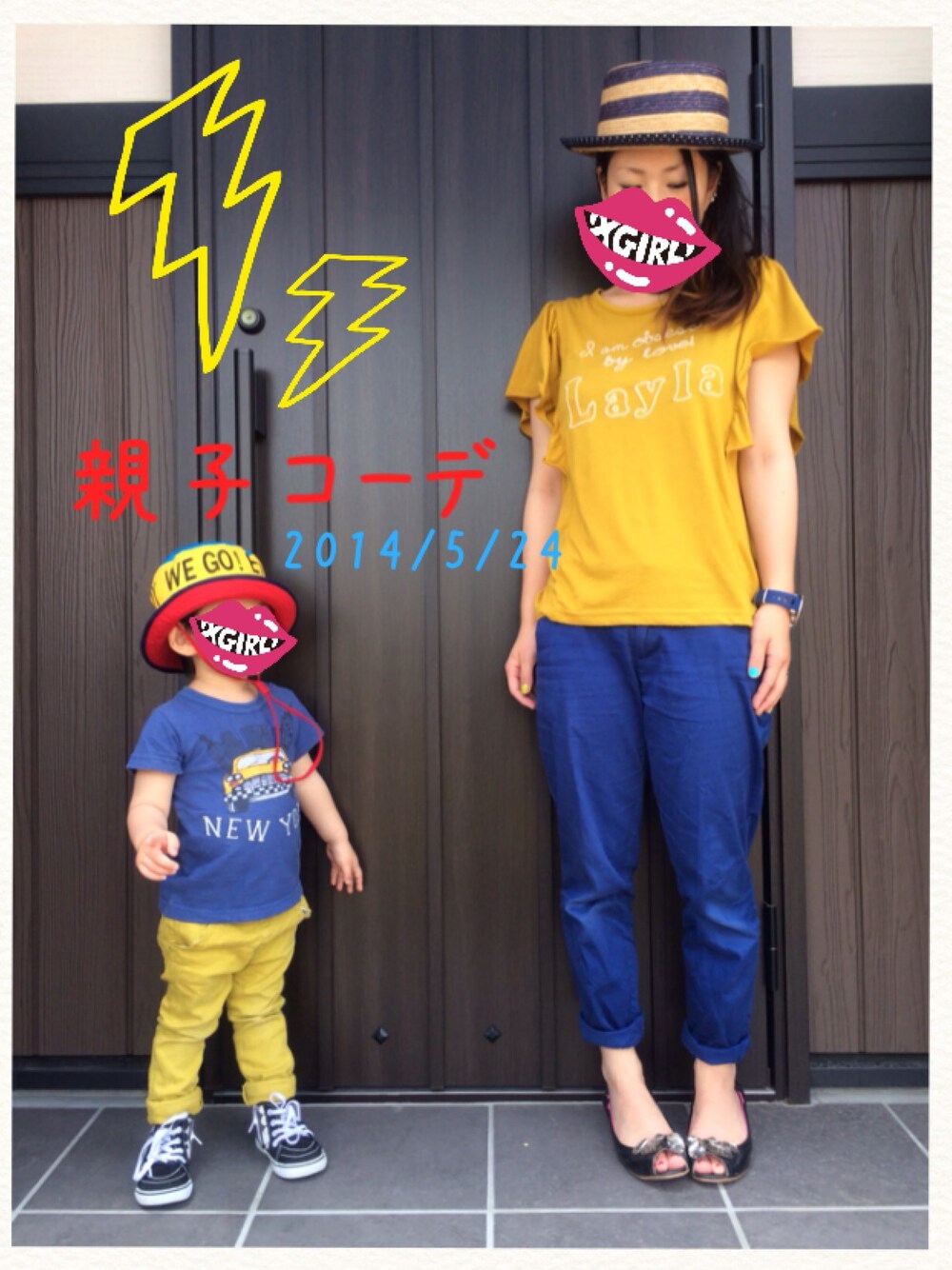 親子でコーデ☺︎☺︎ 上下で同じ色を組み合わせて見ました♡