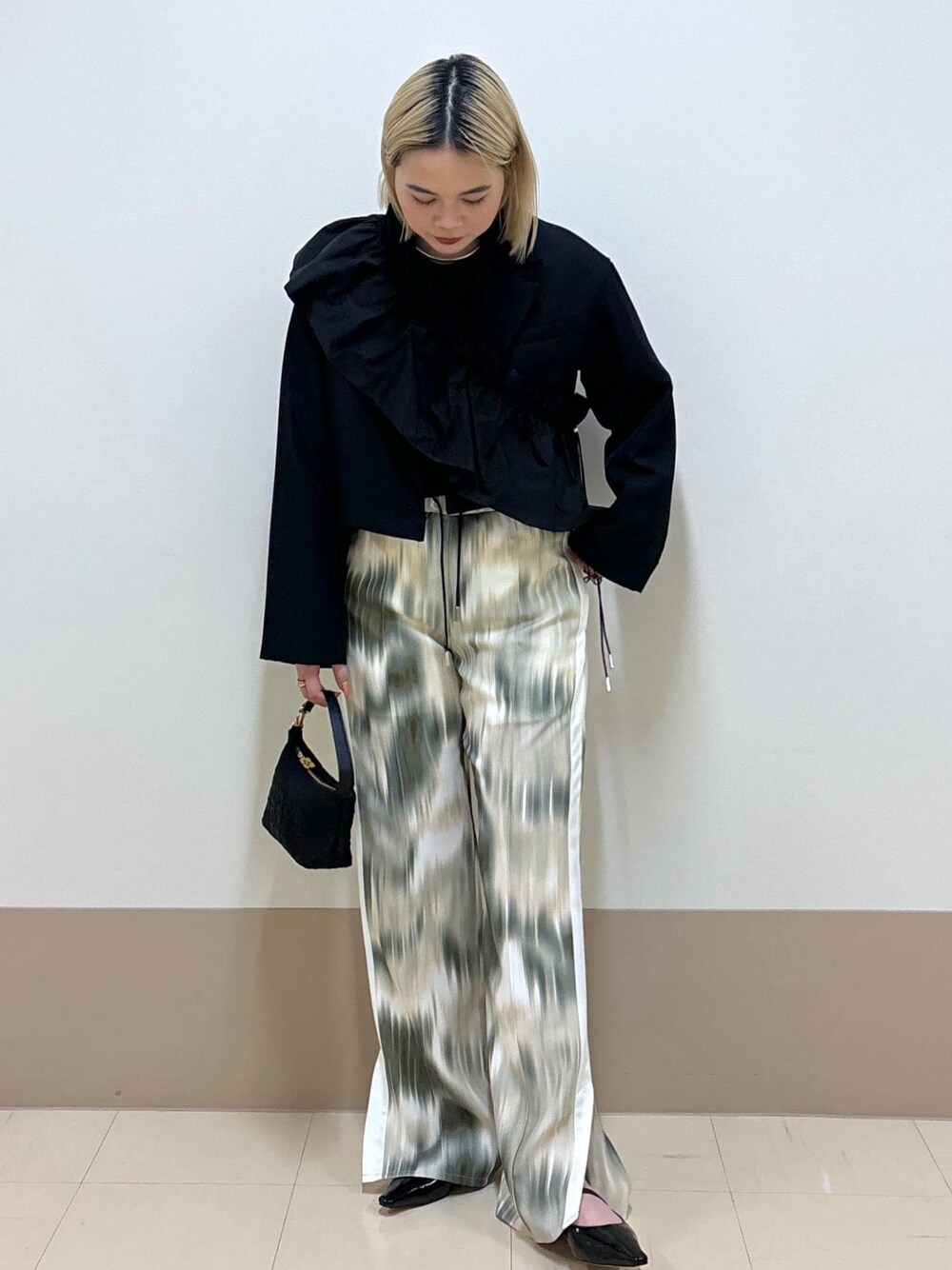 今回は、少し華やかなコーディネートに少しずつ普段でも着れるようなカジュアル感を出したコーディネートです。 ジャケットの中はロゴTを合わせております。 シーンによって中をシースルートップスに変えたりするとパーティーでも着られそうなものになります。 アダムエロペ別注のCHICSパンツは、綺麗なニュアンスカラーがポイントでジャケットに合わせたフリルは、ワンピースとセット売りのもののフリルだけを使用しております。 ジャケットとパンツスタイルに女性らしさを出すために今期流行りのフリルを合わせました。 名古屋タカシマヤゲートタワーモール店は4月24日(水)に同フロアに移転し、リニューアルオープンさせていただく事となりました。 現在は、7階にて仮説営業しております。 皆様にはご不便をお掛けいたしますが、今後とも変わらぬご愛顧のほどよろしくお願いいたします。 【期間限定SHOP開催】 ▼期間 2月10日(土)-4月19日(金) ▼場所 7Fローズガーデン 名古屋タカシマヤゲートタワーモール では通販も承っております。 お気軽にお電話くださいませ。 052-566-6415 LINEで名古屋タカシマヤゲートタワーモールスタッフに相談は【友達だち追加】をタップをして下さい <a href="https://lin.ee/16rd1tF" style="background:url(https://scdn.line-apps.com/n/line_add_friends/btn/ja.png); background-size: contain; display: block;width: 116px;height: 36px; margin:.5em 0;"></a>