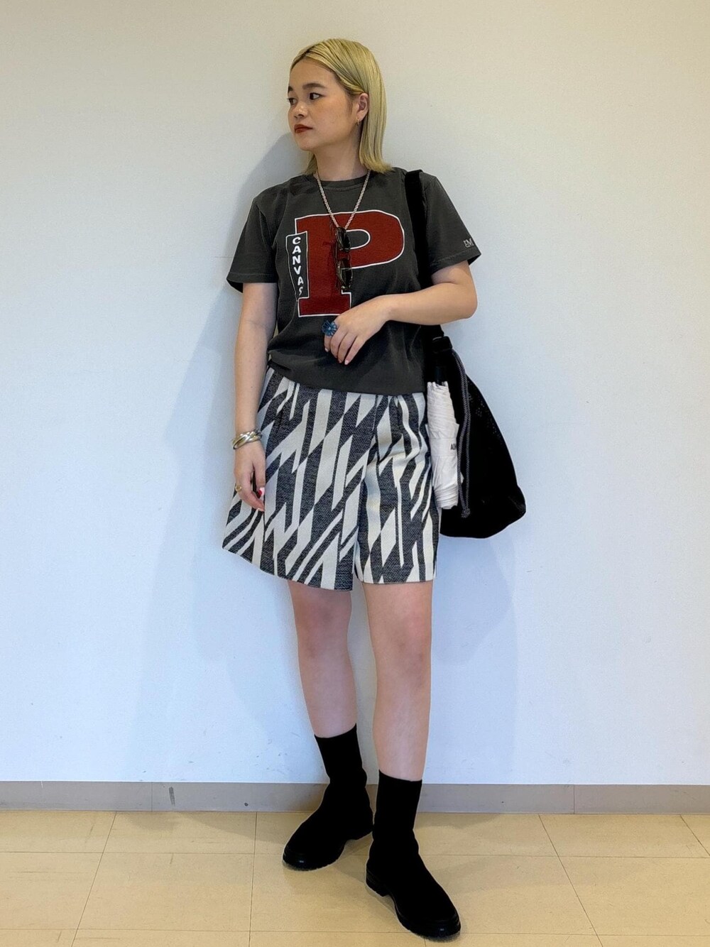 今回は、これからの梅雨時期におすすめなコーディネートのご紹介です。 ラップパンツデザインが子供っぽくなりすぎず大人に雰囲気で履いていただけるハーフパンツにカジュアルにシンプルになり過ぎないプリントデザインがポイントの【PARROTT CANVAS】のTシャツを合わせました。 シューズは梅雨時期に大活躍なレインブーツを合わせました。 ソックスブーツなのでコーデの邪魔にならず、レインシューズ感が少なく、オシャレ見えするレインブーツです。 シンプルで使いやすく持ち運びも便利な男女兼用で使って頂けるシンプルデザインの折り畳み傘もございます。 是非一度店頭でお試し下さいませ。 着用アイテム:EUM34860#06/F 【PARROTT CANVAS】tシャツ