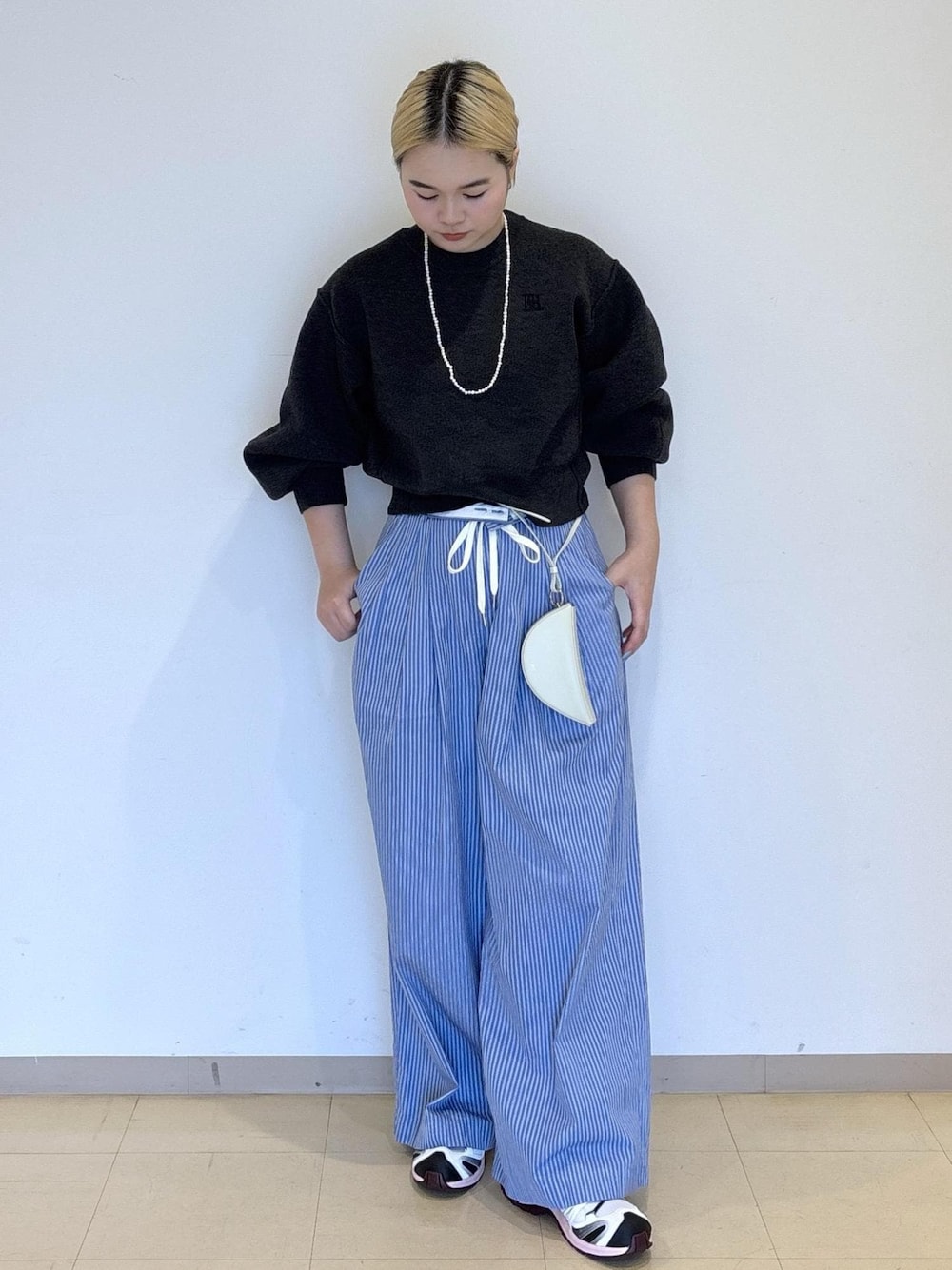 新作のロゴパッチスウェットニットにパジャマデザインのストライプパンツを合わせて、ラフなコーディネートにしてみました。 ラフなコーディネートは、大ぶりのアクセサリーを合わせたり、ワンポイント加えることでダル着感がなくなります。 LINEで名古屋タカシマヤゲートタワーモールスタッフに相談は【友達だち追加】をタップをして下さい <a href="https://lin.ee/16rd1tF" style="background:url(https://scdn.line-apps.com/n/line_add_friends/btn/ja.png); background-size: contain; display: block;width: 116px;height: 36px; margin:.5em 0;"></a> お気に入りのスタイリングやスタッフは是非♡ボタンでお気に入り追加をお願い致します。 【お気に入り】タブから一覧でご覧頂けます。