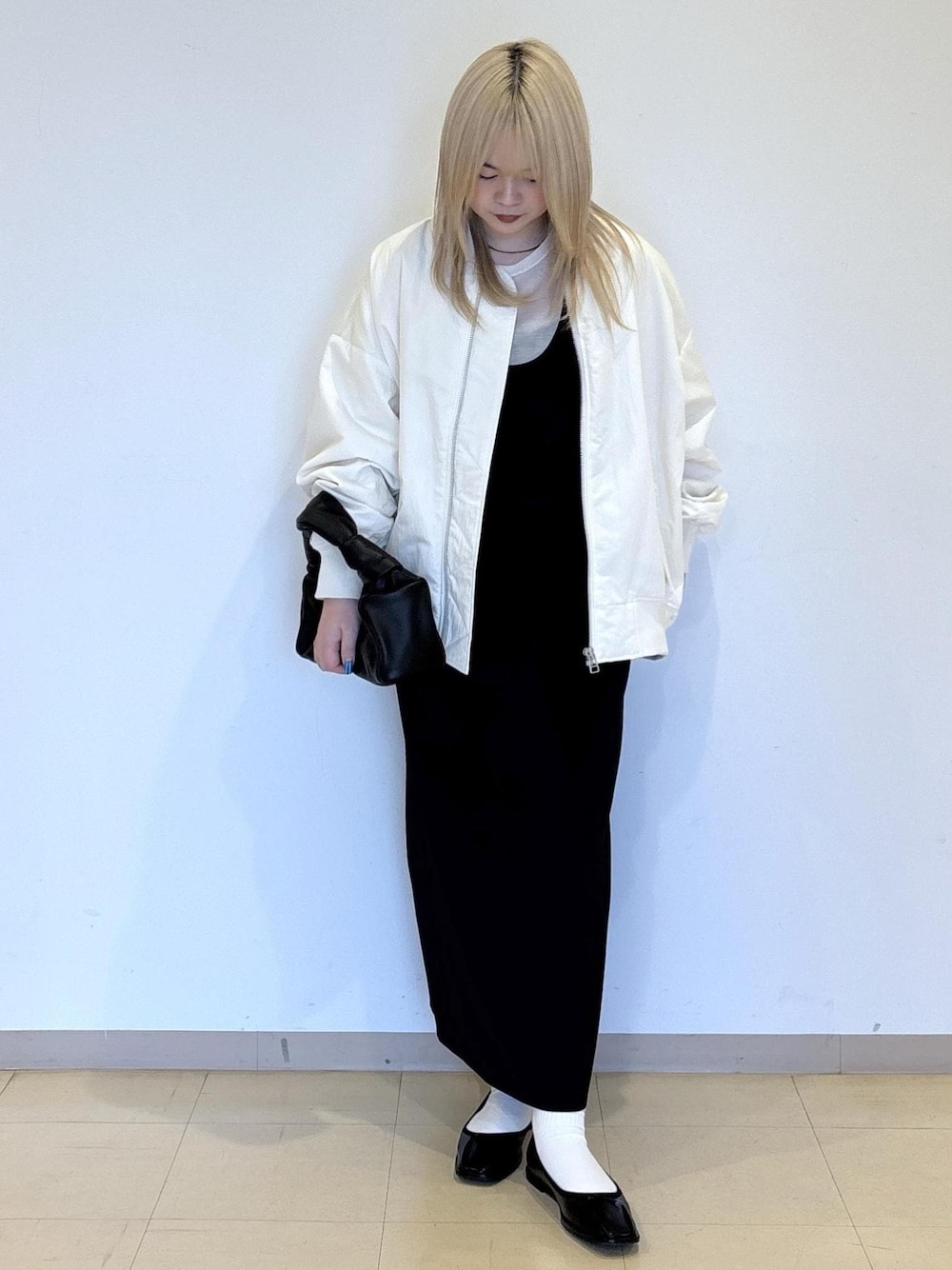 中のワンピースは黒を選ぶことでコーデに締まりも出て、別注のprovoke MA-1の白が春らしいコーディネートです。 ワンピースもカットソーやニットやスウェットを上から来たり、暖かくなればキャミを合わせて着回し力抜群なキレイめワンピースです。 MA-1でボリューム感があるのですっきりめシルエットのワンピースと足元もバレエシューズでメンズぽくなりすぎない女性らしいコーディネートです。 LINEで名古屋タカシマヤゲートタワーモールスタッフに相談は【友達だち追加】をタップをして下さい <a href="https://lin.ee/16rd1tF" style="background:url(https://scdn.line-apps.com/n/line_add_friends/btn/ja.png); background-size: contain; display: block;width: 116px;height: 36px; margin:.5em 0;"></a> お気に入りのスタイリングやスタッフは是非♡ボタンでお気に入り追加をお願い致します。 【お気に入り】タブから一覧でご覧頂けます。