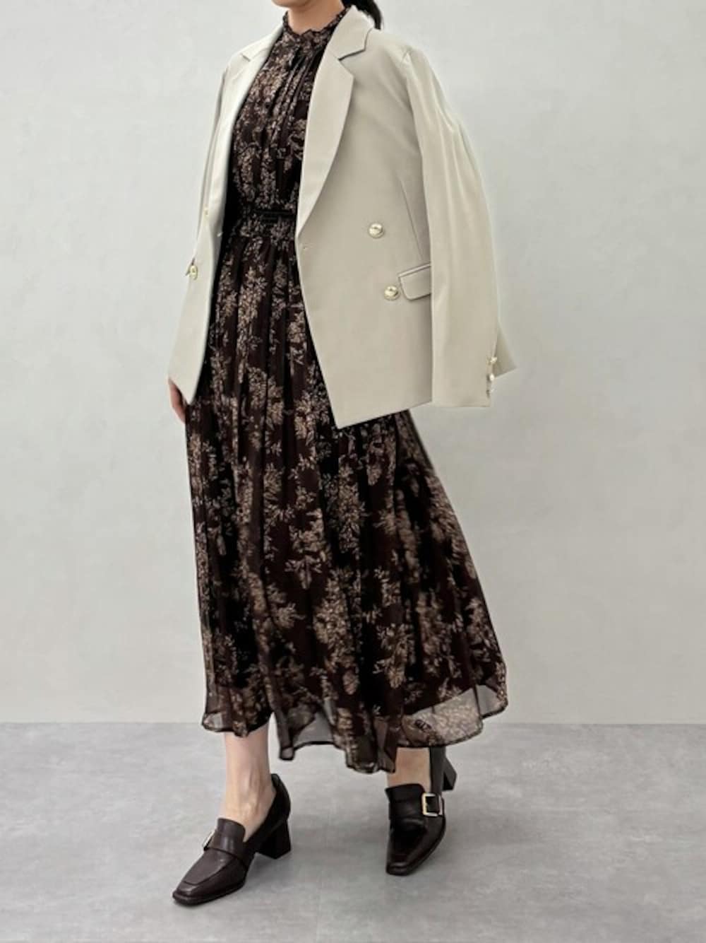 大人気のオリジナルフラワー柄のワンピース。 ジャケットを合わせてクラシカルな雰囲気で着こなすのもおススメです!