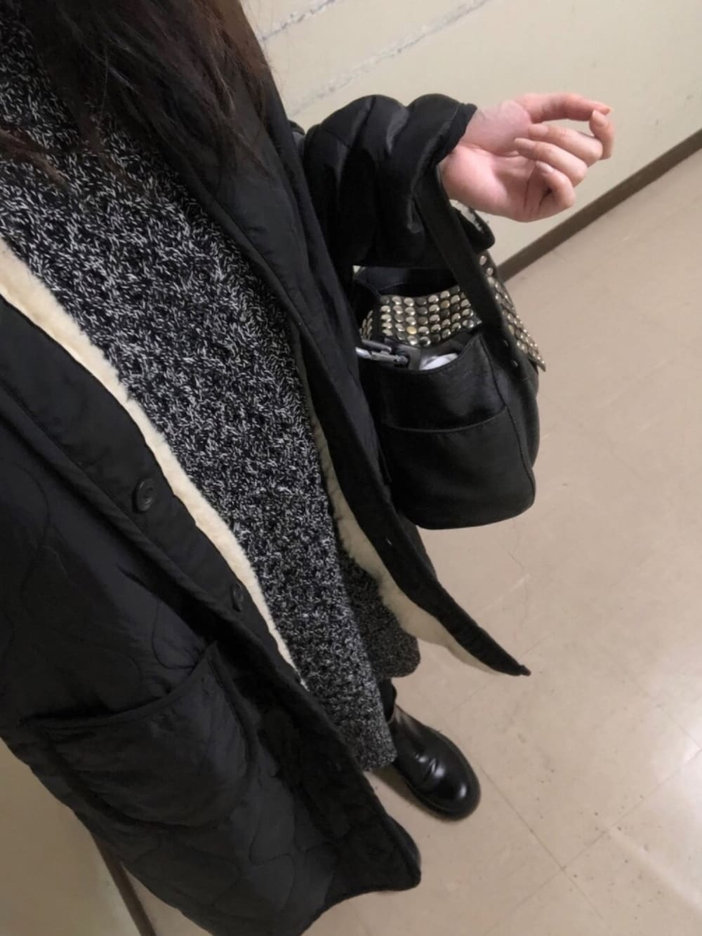 初雪が降ったので、 いつものボアブルゾンを着ようかと 思ったけど、このコートに(ö) 内側ボアあったかい➳♡