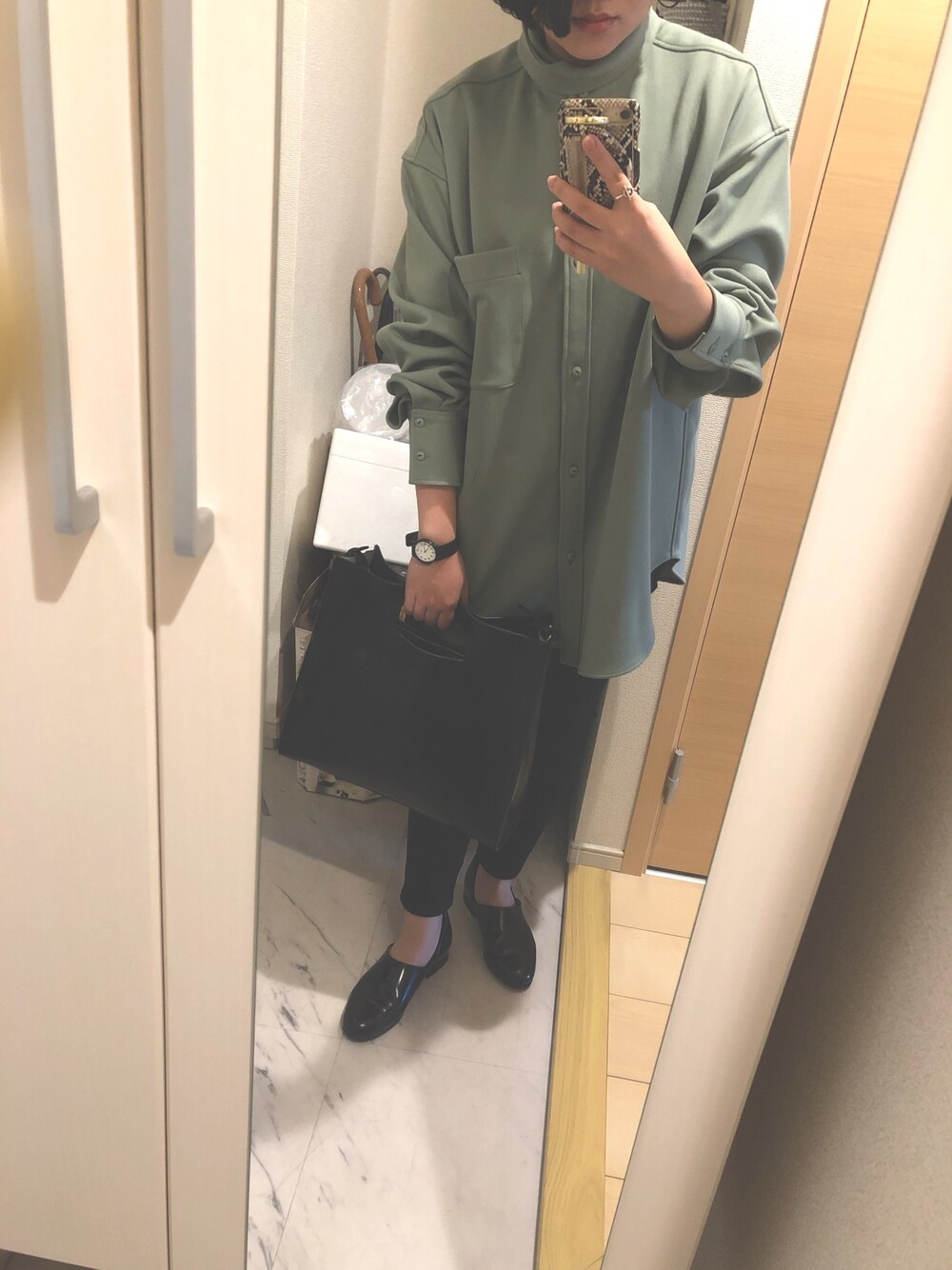 ecoのシャツ/ブラウス「<6(ROKU)>JERSEY LONG COLLAR SHIRT/シャツ」を使ったコーディネート