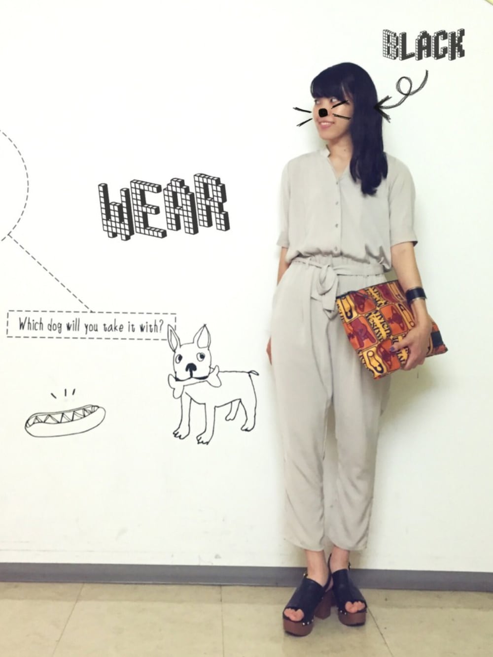 サラッと一枚来てお出かけできるスタイル🏃🏻 HAREのオールインワンは素材がツルッとしていてずっと触りたくなる〜。 夏物SALEスタートでお買い得です😎🎶 背景はほとんど壁に描かれていた絵です😳 可愛かった…💓 付け足しでWEARと、 髪色を黒にしたのでBLACKなどなどのスタンプをペタペタ✌🏻️