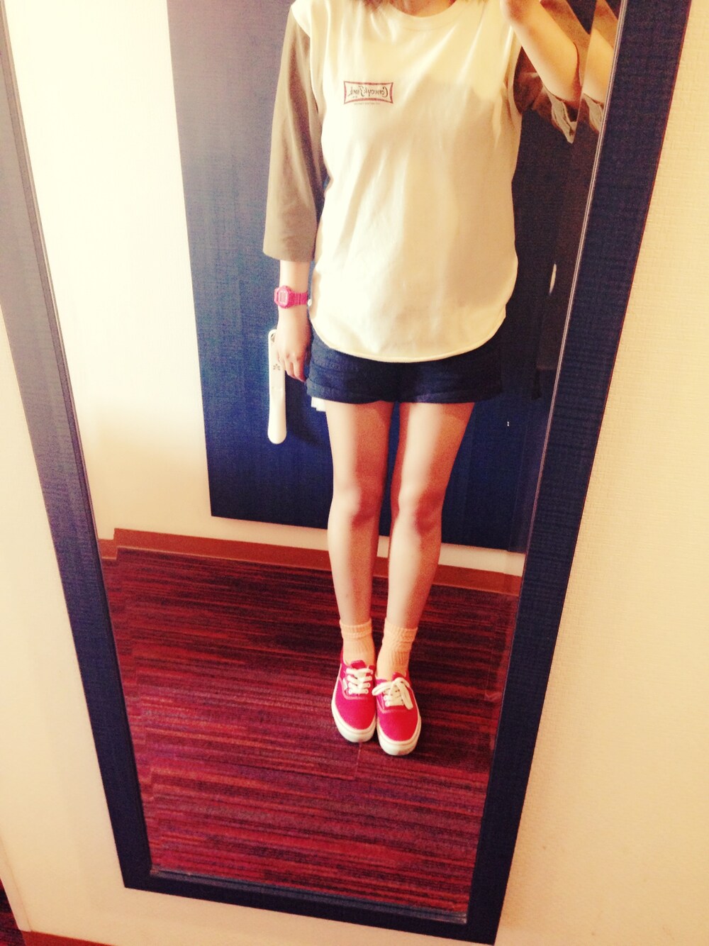 リラックススタイル第二弾☆ てか常にリラックス重視の服装な気がします。 お気に入りのものばかり着回ししてしまう。 ラディアルのラグランは大きめで楽チン\(^o^)/ なんかオレンジの靴下と赤のvansがすき😻 頭が入ってないけど、milkfedの赤ニットかぶってます\(^o^)/ 初鎌倉、江ノ島最高に楽しかった〜 あ〜あの辺住みたい!! 海、空、山が近いって素敵\(^o^)/ 今から田舎へ帰ります。。笑