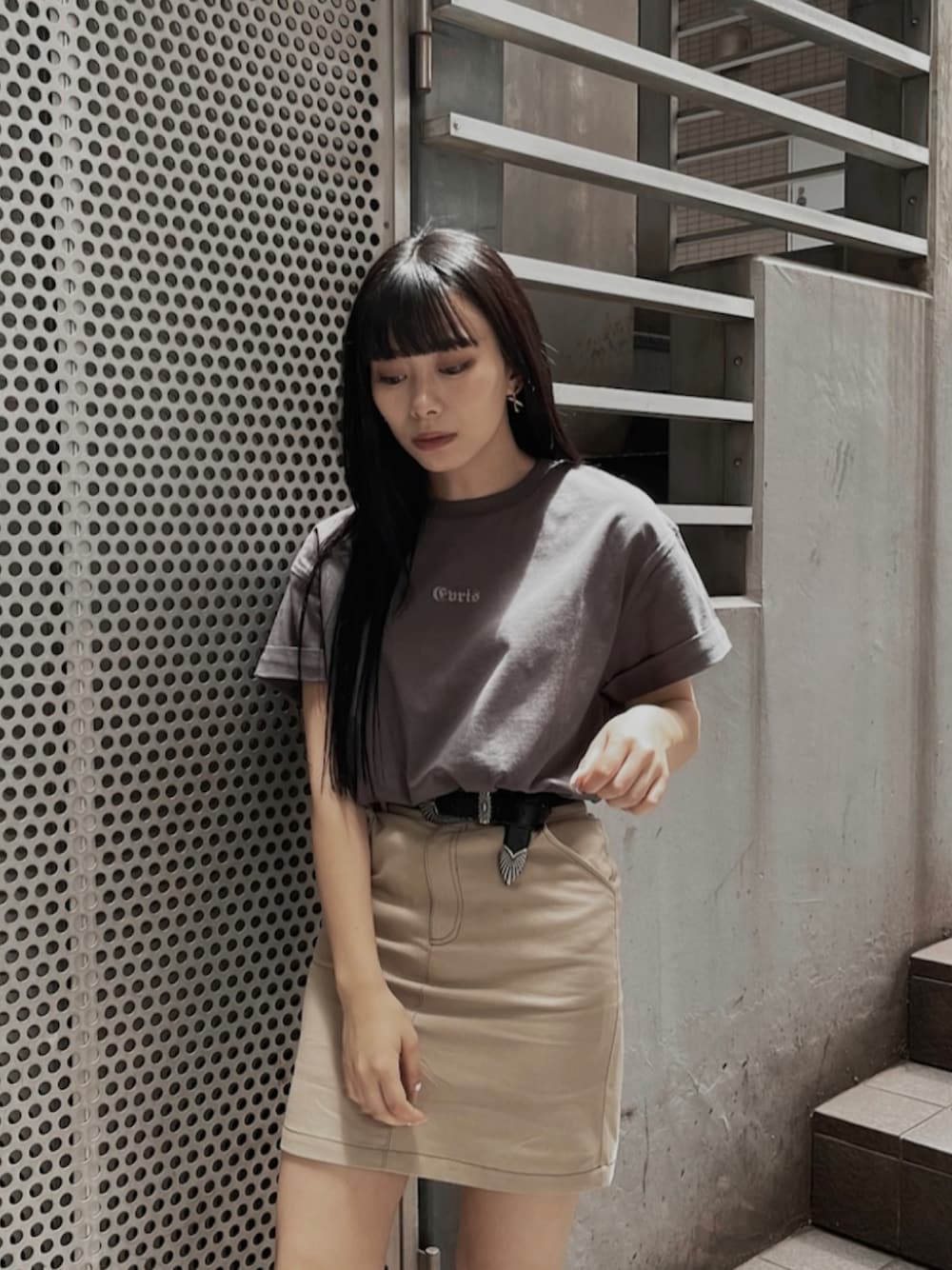 越後 穂乃香(EVRIS)のTシャツ/カットソー「ロールアップグラフィックTEE」を使ったコーディネート