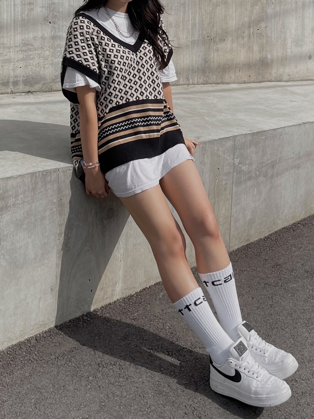 大人気のニットベスト❤︎ Tシャツ合わせでカジュアルに着るのが個人的におすすめ💭 夏場でも着れる素材感なのでオールシーズン🌞 instagram ≫ @honoka__echigo