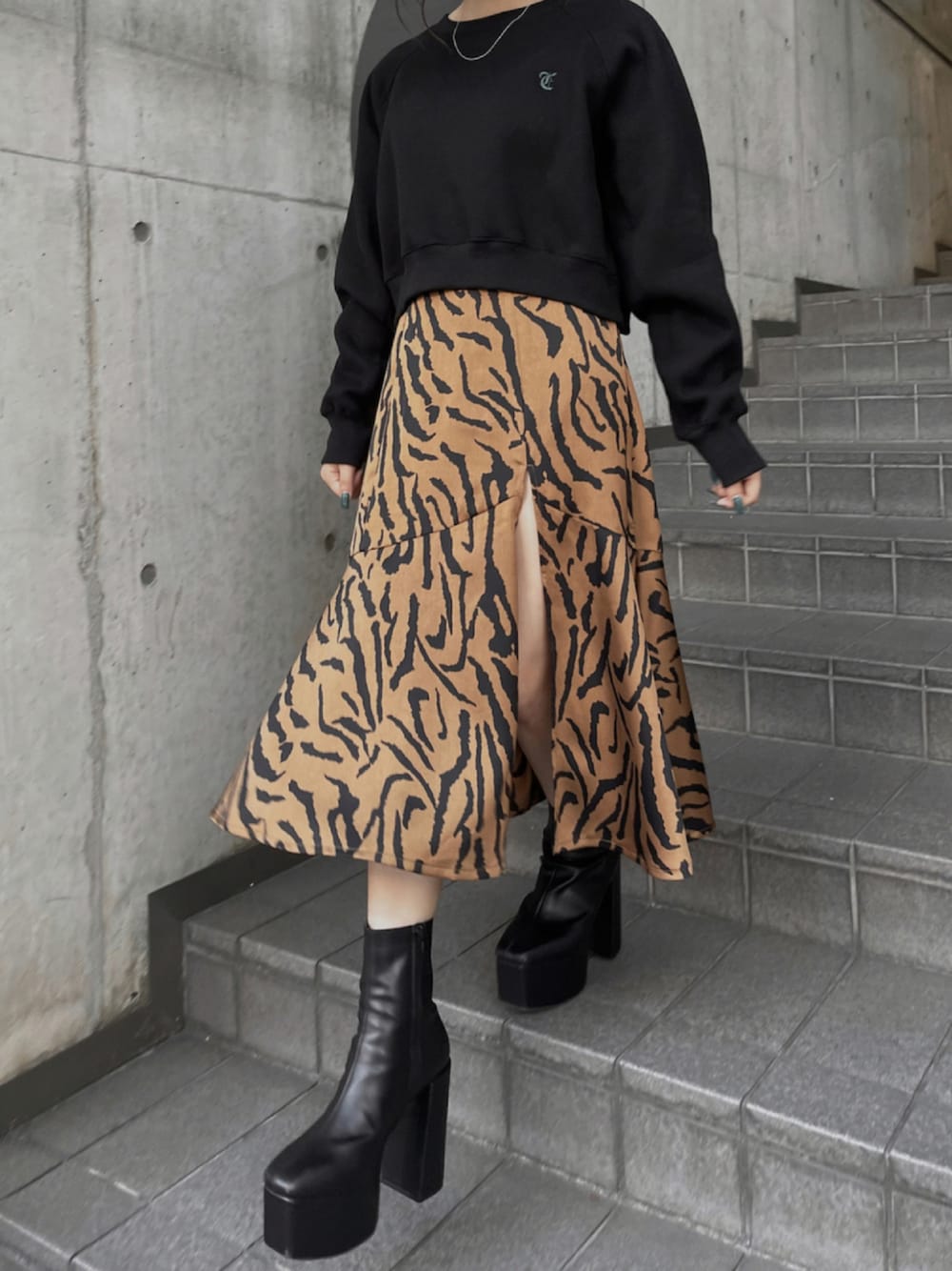 サイドにスリットが入ってて動きが滑らかなスカート🐅 マーメイドまでピタッとしてないけど フレアまで広がってない絶妙なシルエットがかわいい、、❤︎ ショートのスウェットでのカジュアルダウン合わせが好き💭 instagram ≫ @honoka__echigo