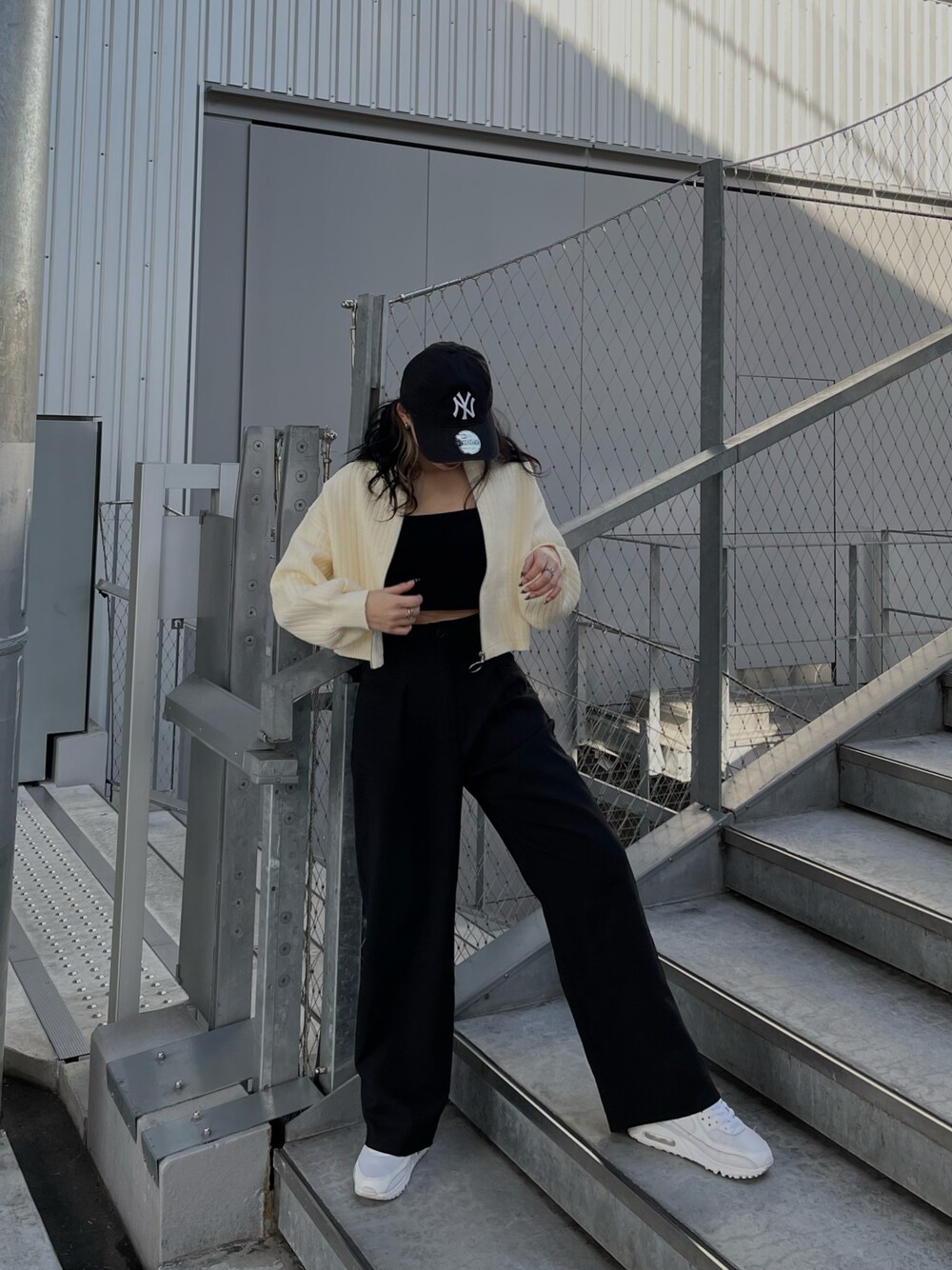 #バックZIPニットトップス は フロントで着てカーディガンとしても可愛い🤍 ハイネックを着たり、、など 着回し抜群アイテムなのでマストハブです✨ ショート丈なのでスッキリとした印象に🌿 ボトムス合わせ困らないので合わせやすいです🐾 instagram @honoka__echigo
