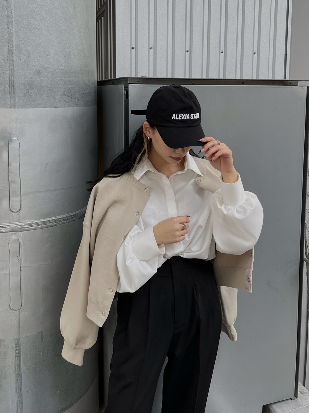 テロッとした質感が可愛いシャツ🤍 シンプルなデザインで使いやすくベーシックなマストハブアイテム✔︎ リングボタンのトップスはカーディガンとしても🐶 instagram @honoka__echigo