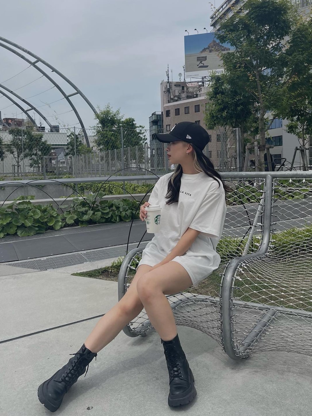 越後 穂乃香(EVRIS)のブーツ「レースアップインソールワークブーツ」を使ったコーディネート