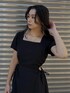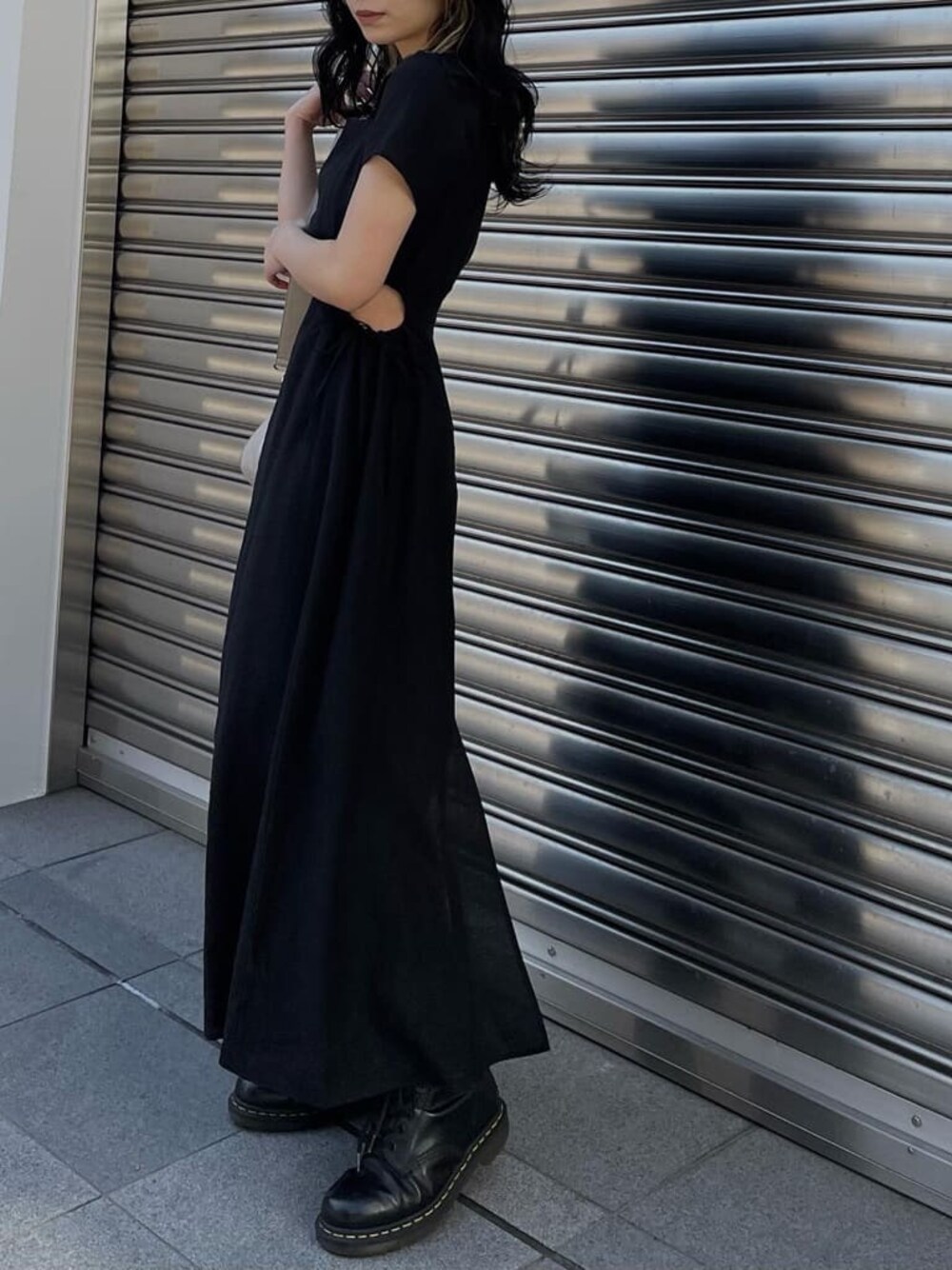 大人ブラックコーデ☺︎ サイドがカッティングされていて程よく肌見せできる大人ワンピース✴︎ ハイウエスト位置にカッティングされている為より足長効果抜群で1枚でスタイルアップしてくれます⤴︎ スクエアネックで女性らしさがあるのでフォーマルな仕様でも可愛いですが、日常使いを考えてカジュアルダウンでブーツを合わせました♪ 低身長の方でもくるぶし上辺りの丈感なのでおすすめです✔︎