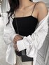 【 リアル私服コーデ 】 出勤時やラフにしたい時のリアル私服。 温度調節を出来る様にキャミソールにシャツを羽織るのが梅雨や微妙な時期は多い✔︎ チューブトップは細ストラップで肩幅広い方も華奢に見せてくれるのでおすすめです☺︎ しかもパットが入ってるので1枚で楽ちんなアイテム。 シンプルでインナーにも使いやすいので2色買いも◎ 合わせたシャツはハリのある生地で高見えしてくれて、腰やお尻も隠してくれるくらいオーバーサイズ。 ワンピースとしても着用出来て着回し力が抜群で個人的にもヘビロテなシャツ♪ スニーカーを合わせてボーイズライクに✴︎