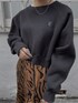 EVRISのEロゴの刺繍が入ったスウェット❤︎ ショート丈なのでバランスも取りやすくてボトム問わずに使える万能トップス✔︎ 裏起毛なので1枚でも保温性もバッチリで肌触りも◎ ロングスカートを合わせてカジュアルすぎない合わせに。 ゼブラ柄でアクセントのあるコーデに☺︎ スリットが深めに入ってるので歩いた時の揺れ感やチラッと肌見せ出来るのが可愛いです✴︎