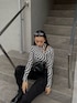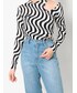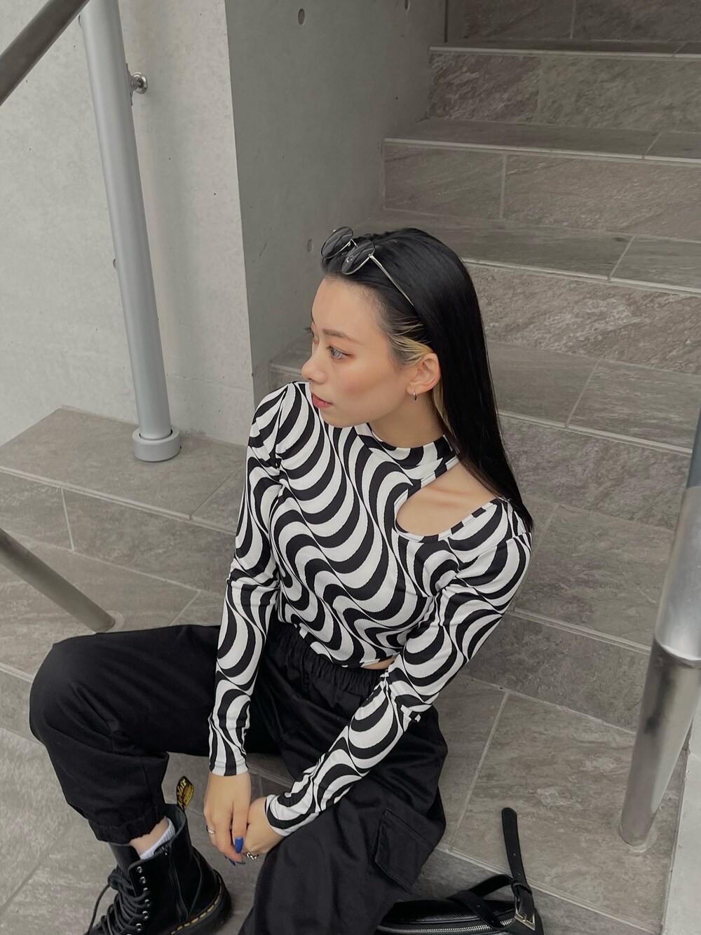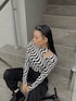 ウェーブデザインが映えるモノトーンコーデ🔍 ウエストとショルダーにカッティングが入ってるピタッとトップス🤍 ピタッとするサラサラした素材なので着心地も良く夏手前まで使えます👌🏻 ウエストカッティングが更にウエスト細見えするのでスタイルアップ効果絶大⤴️