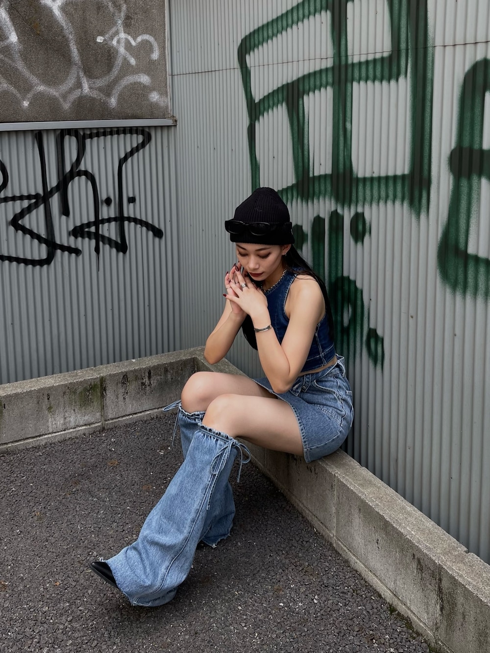 越後 穂乃香(EVRIS)のキャミソール「【10周年記念】デニムワンショルダートップス」を使ったコーディネート
