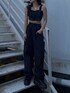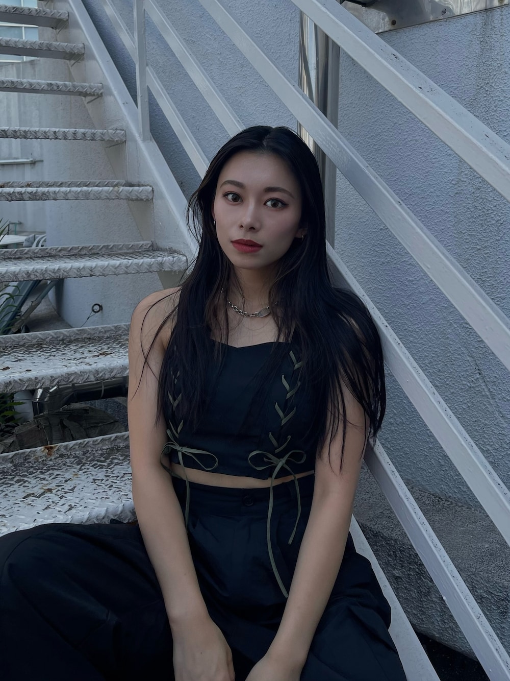 セットアップアップ風コーデ🌪️ 胸元のレースアップがポイントになっていて可愛い💕 1枚でももちろん中にインナーを着たり、シャツを合わせれば露出も少なくデイリー使いもしやすいです🧷 カジュアルにパラシュートパンツと合わせでクールなコーデにしました🖤