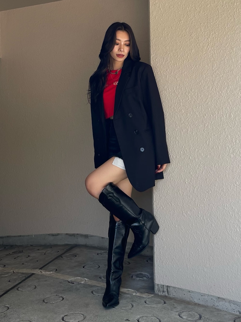 レディライクコーデ♡ インナーはREDで遊び心を+ ミニスカートはかなり短めですがインナーパンツも付いてて安心◎ トップスはおへそくらいの丈で着用してます♪