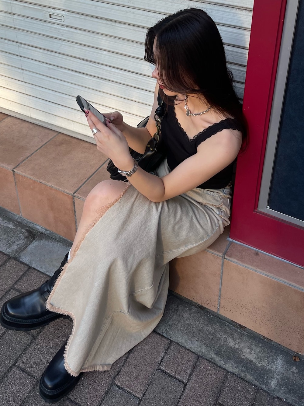 楽ちんなタンクトップ×スカートで夏の大人カジュアル🌿 スカートがしっかりデザイン入っててシンプルすぎずで◎ 150cmでSサイズ着用してます。