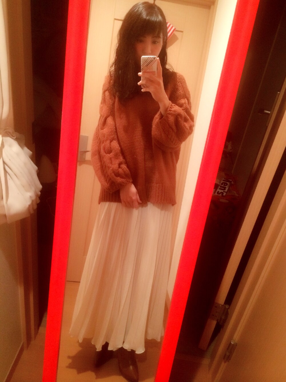 ずるずるゆるゆるコーデ💓 キャメルとオフホワイトで柔らかい色使いに😊