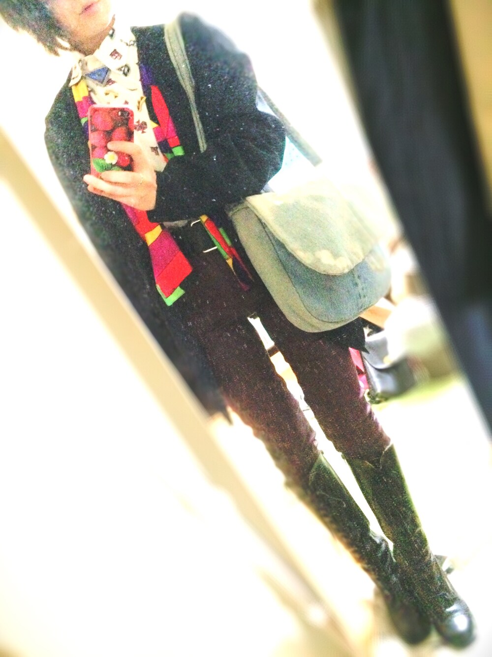 シャツインこーで ジャケット・シャツ・カバン…古着屋RAINBOW ボルドースキニー…H&M
