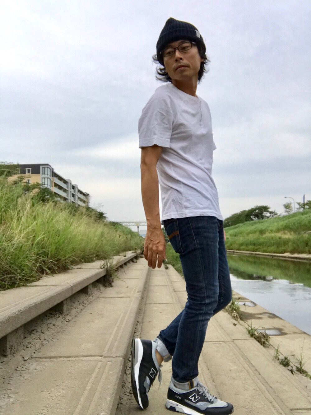 ちょいユル白ヘンリーネックTシャツと ビーニーと nudie jeansと newbalanceと 久々メガネ小僧👓 ポイントは シンプルコーデにnewbalanceです✨ たいくつ土曜日あたくし1人 朝掃除した後昼寝をし 夕方散歩からのビールを飲み🍺 そして夜を過ごす🌙 出かけることもなく 家でゴロつくのも 良いもんです