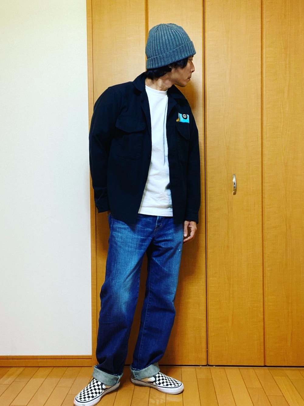 ミリタリーコーデ デニムは緩めです この感じいいですね✌️