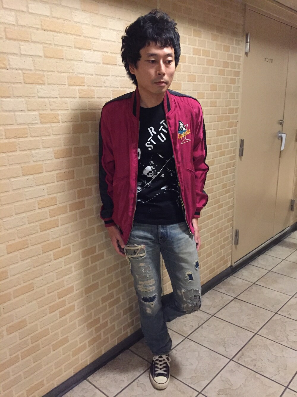 Tsutomu Echizenのブルゾン「NAKED TRUTH刺繍 裏総柄リバーシブルスカジャン」を使ったコーディネート