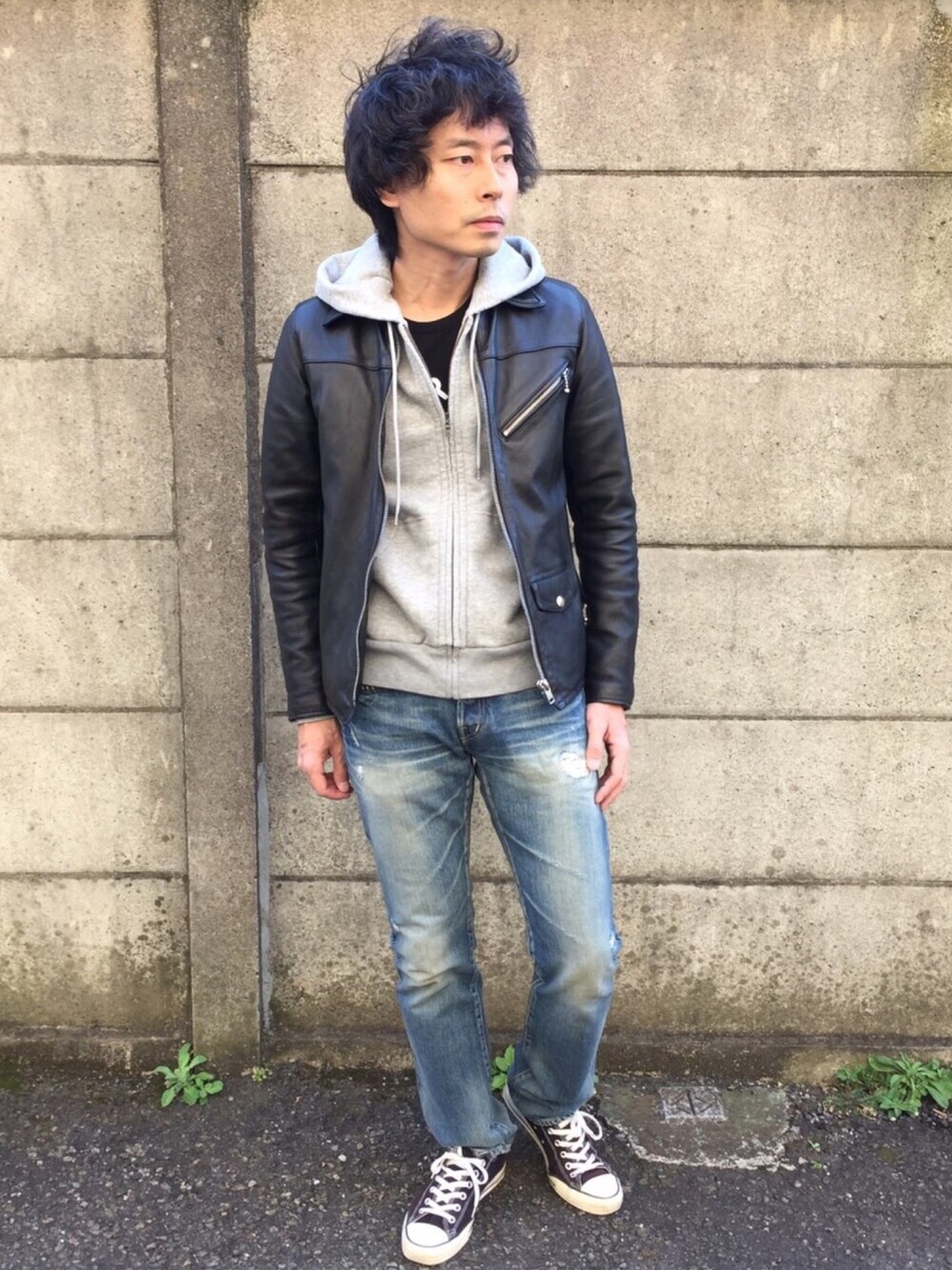 とりあえずライダースにパーカーという スーパー王道コーデ✌️