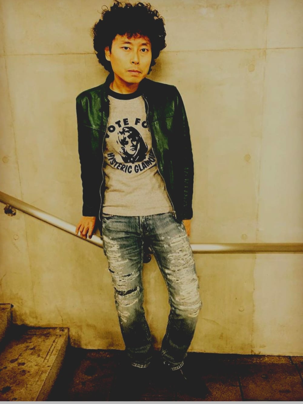 Tsutomu Echizenのライダースジャケット「ラムレザーボタンダウン シングルライダースJK」を使ったコーディネート