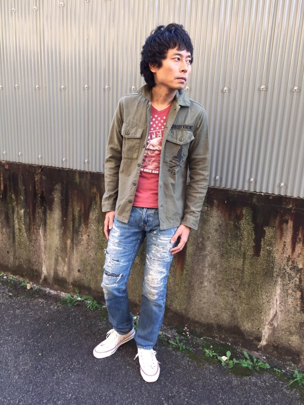 なんと最近撮影をかまけておりアップ出来る 写真がなくこれはチョイ前に撮影したとされる ミリタリーシャツコーデ😅 最近 中島みゆきを歌う研ナオコに聴き入るように なりました😝 あたくしも年とりましたな〜