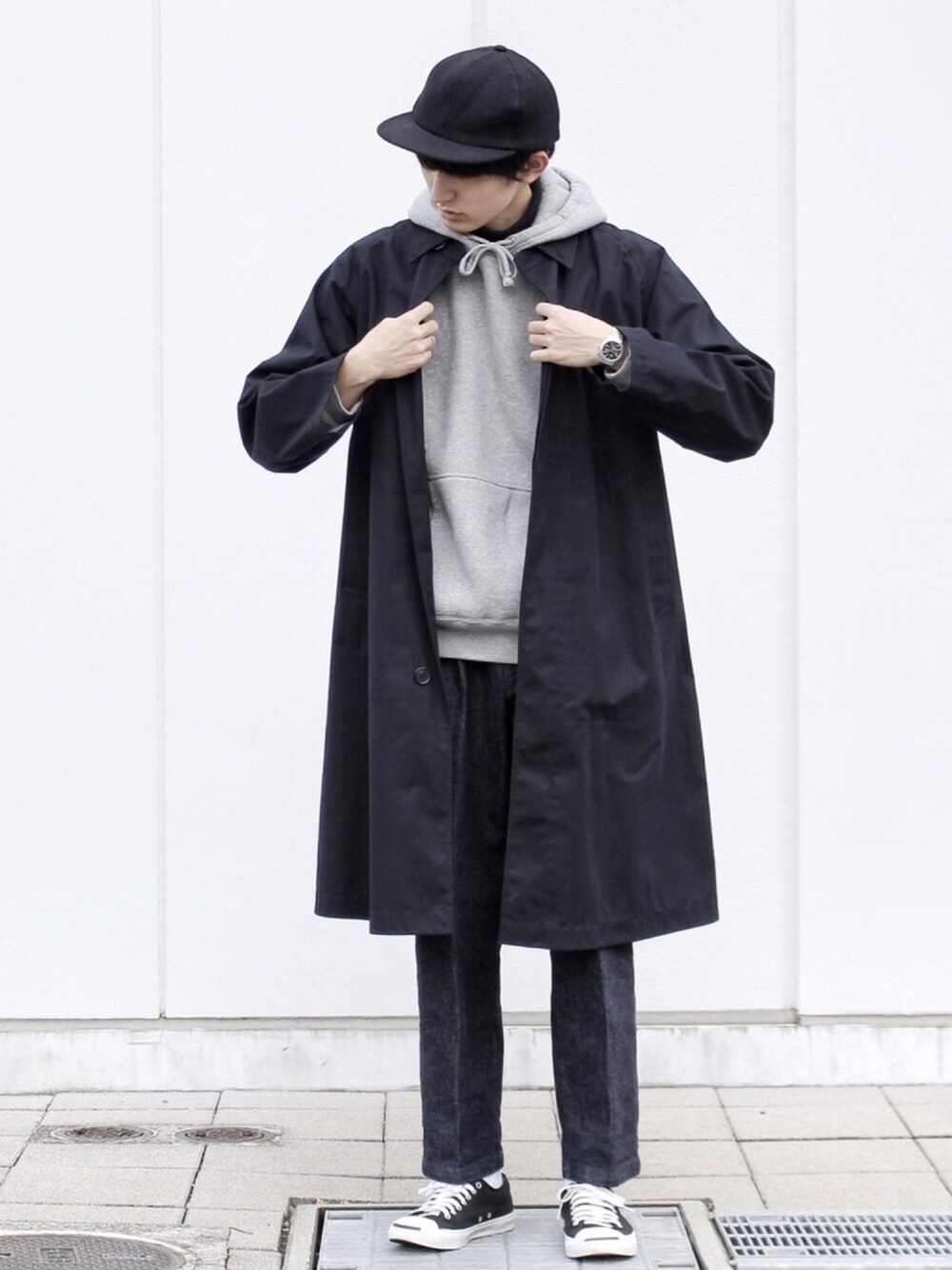 去年のUのコート、 カラーはブラックなんだけど、合わせ方によっては黒にもネイビーにも見えて難しいけど面白い。 手持ちのコートでシルエットが1番好みです◎