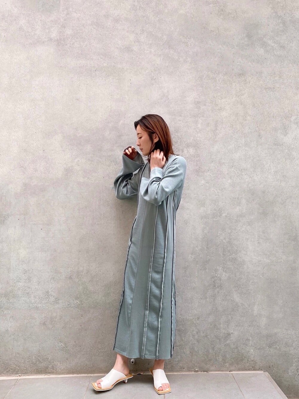 表情の異なる3種類のカットソーを組み合わせたワンピースは、異素材のコントラストと、部分的に表に出した縫代がポイント。 タイトすぎないストレートシルエットで、身体のラインを拾わず、柔らかな素材感でストレスフリーな着心地に。