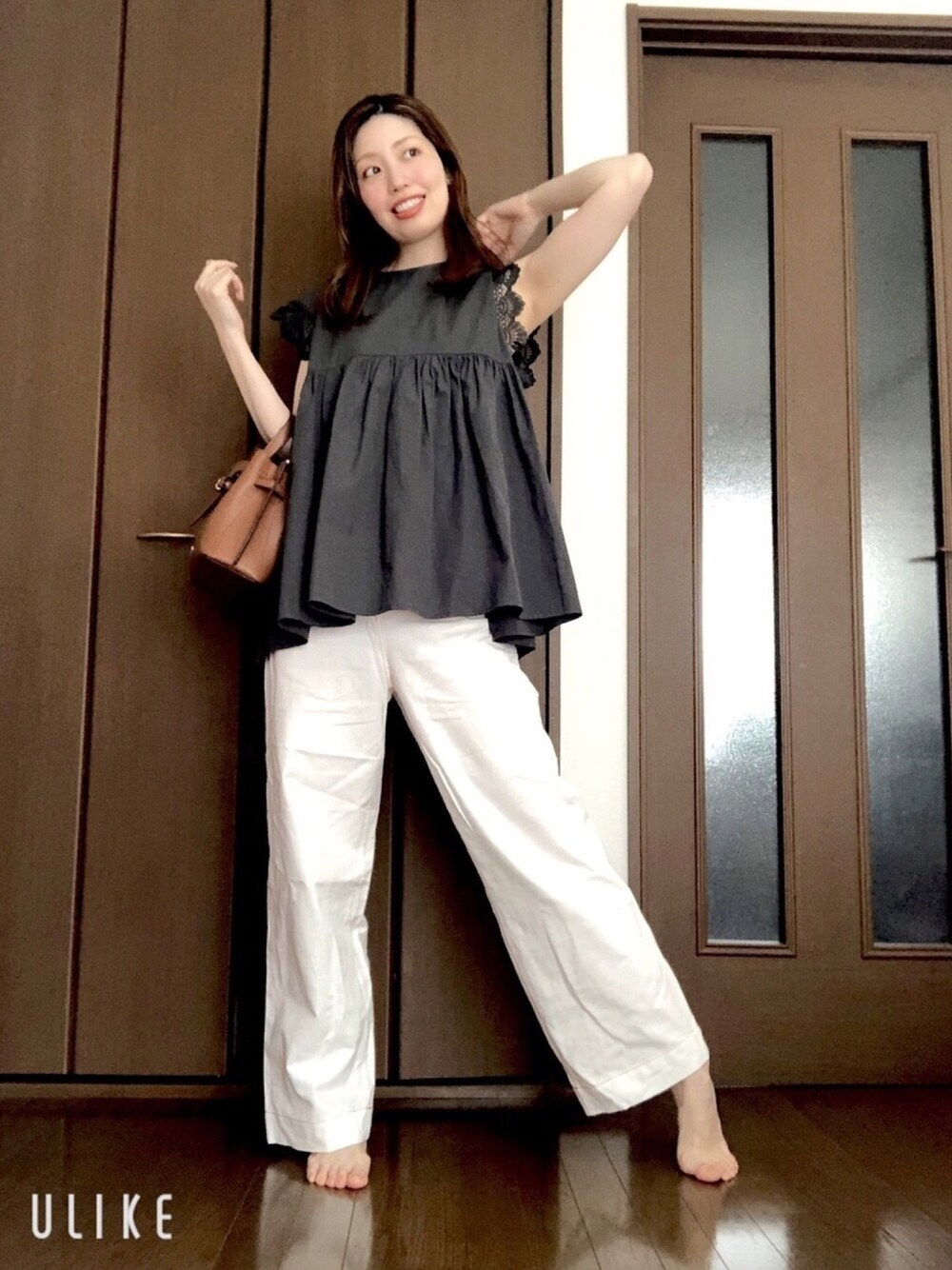 初✨投稿です🍰🍩 cocaのフリルトップスは肩のフリルが可愛いし、二の腕カバーができていい感じ😍 生地もしっかりしてて、洗いやすそうで使いやすそう😊 この夏たくさん着回せそう🌈✨ ボトムの白パンはアウトレットでの購入品