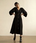 ブラック系のワンピースを着用したレディースの春コーディネートの2枚目の写真