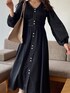 ブラック系のワンピースを着用したレディースの春コーディネートの3枚目の写真