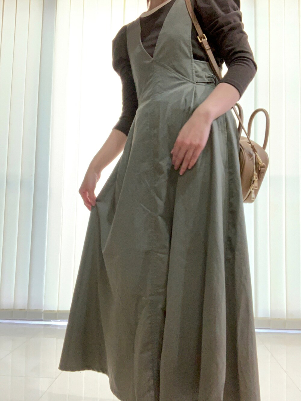 *hana*のジャンパースカート「サイドベルトVネックジャンパースカート」を使ったコーディネート