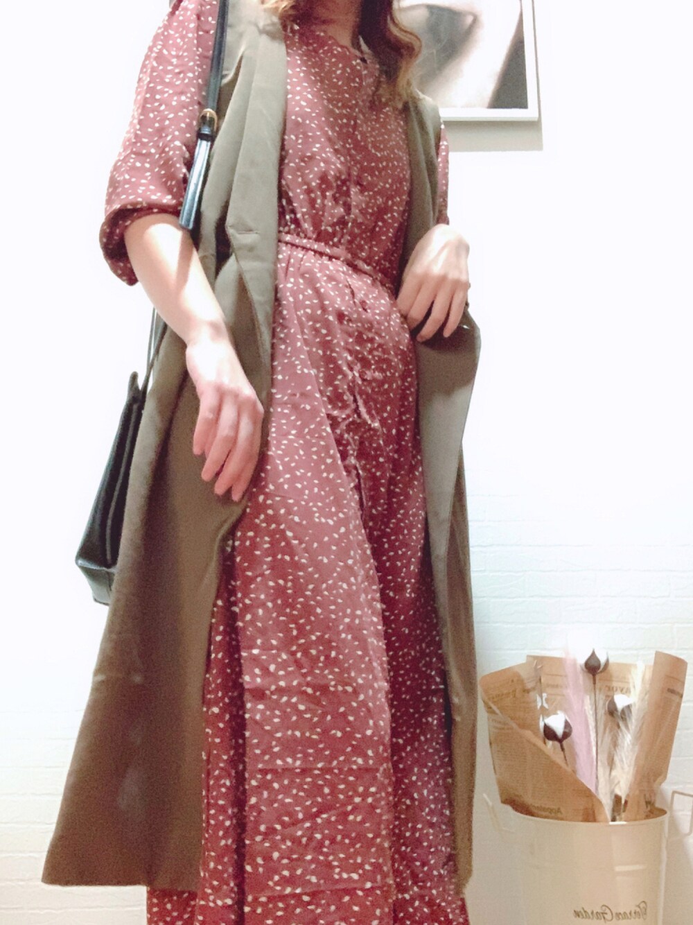 ご覧頂きありがとうございます🙏✨ ピンクブラウンのワンピースに ジレ合わせ🐰🤎 ワンピースは、くすみブラウンの絶妙な色合いの大人カラーで使いやすいです👏👏 モカのジレを羽織り甘くなり過ぎないワンピースコーデにしてみました🌈 ジレはなんとジャンスカにもなり、 かなり使えるアイテムです🙏 そして嬉しいポケット付き👼 宜しければ いいね・お気に入り登録 お願い致します🙇♀️❣️